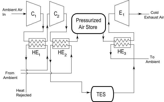 Consider a system with a 2-stage compression and single stage expansion as illustrated below.