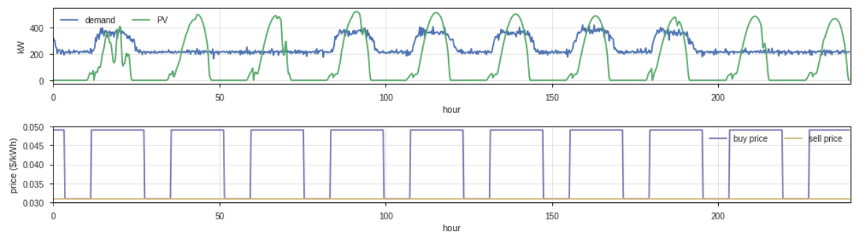 In this blog post I will look at how to optimize a battery schedule using a Mixed Integer Linear Programming (MILP) formulation of the problem. I use data from a recent data-driven competition, which investigated using batteries to minimize a site’s electricity bill. I used this in a paper recently (Projecting battery adoption in the prosumer era in Applied Energy) and this post documents the problem formulation. All the code and data is available in this repository containing a jupyter notebook which goes along with this post. This post is written to go along with the code in the repo. The repository also contains an alternative formulation (also used in the paper) as well as notebook which applies the formulation to all test data set of the data driven competition to generate a score.